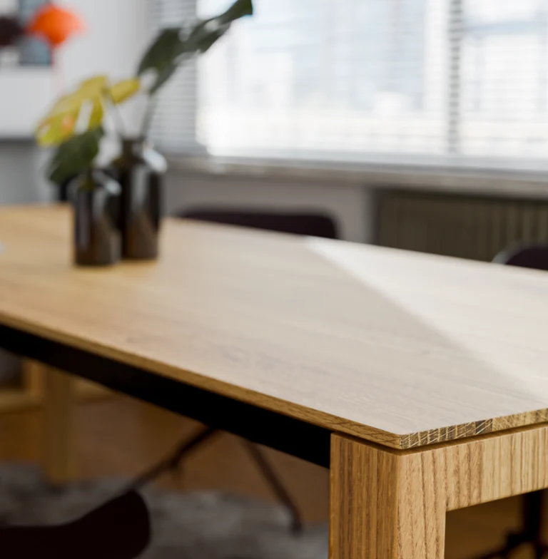 Aras- stół z litego drewna, łączy funkcjonalność z czystą formą. Nierozkładany blat daje wrażenie lekkości, a solidna podstawa gwarantuje stabilność bez kompromisów.