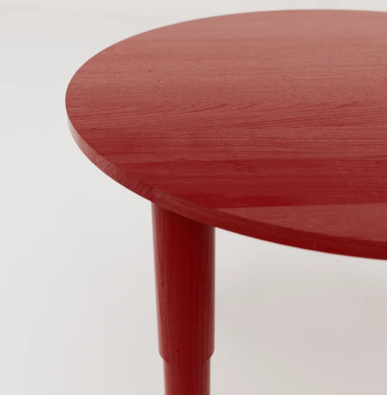 Tele to okrągły stół, który łączy w sobie współczesną lekkość z codziennym komfortem. Czysty, delikatnie wyprofilowany blat i rytm segmentowanych nóg nadają mu spokojny, architektoniczny charakter. Stół wykonany jest z litego drewna dębowego lub orzechowego, dostępny również w wersji z lakierowanego dębu w trzech kolorach. Występuje w dwóch średnicach: 100 i 120 cm.